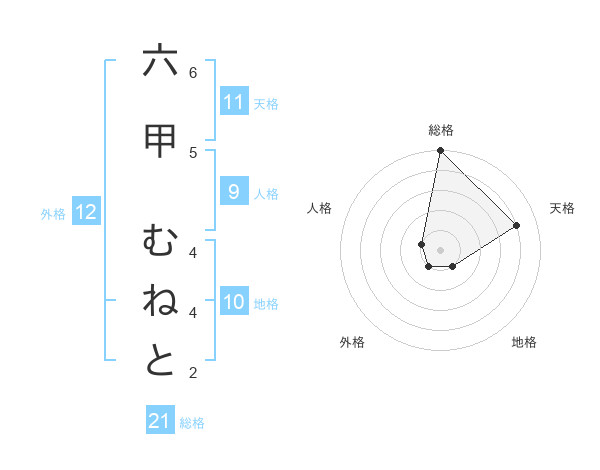 六甲 むねとさんの総格は21画の5点!