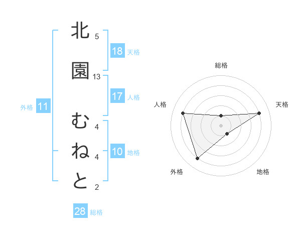 北園 むねとさんの総格は28画の1点!