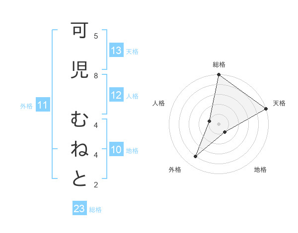 可児 むねとさんの天格は13画の5点!