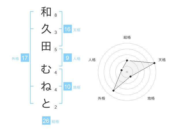 和久田 むねとさんを姓名の画数から五運を鑑定