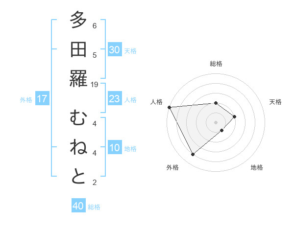 多田羅 むねとさんを姓名の画数から五運を鑑定