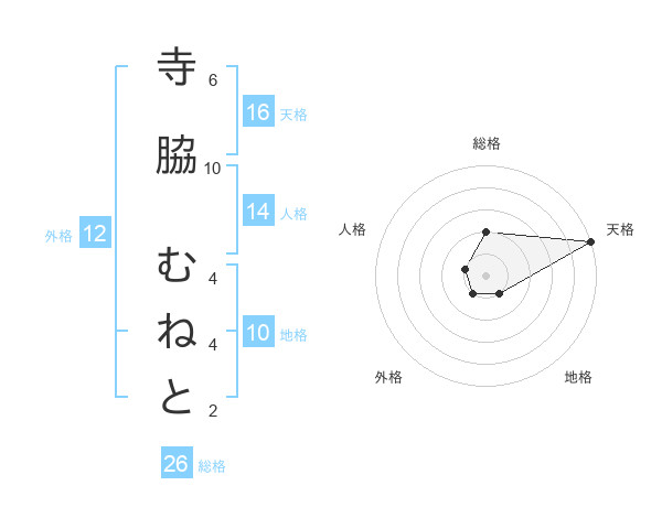 寺脇 むねとさんを姓名の画数から五運を鑑定