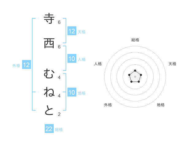 寺西 むねとさんを姓名の画数から五運を鑑定