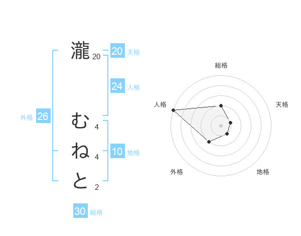 瀧 むねとさんの天格は20画の1点!