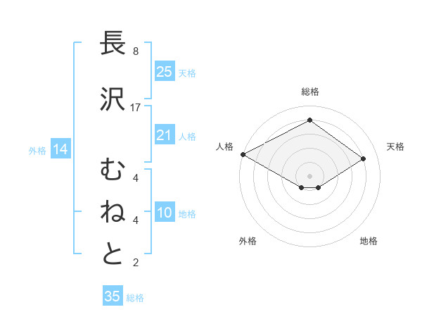 長沢 むねとさんを姓名の画数から五運を鑑定