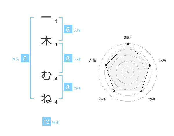 一木 むねさんの総格は13画の5点!