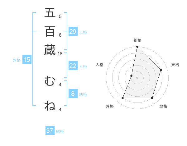 五百蔵 むねさんの総格は37画の5点!