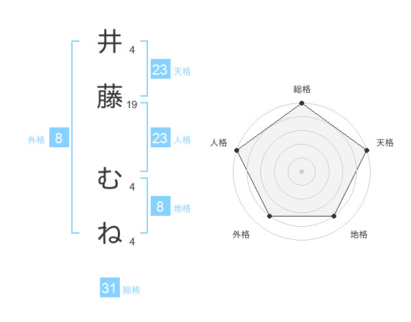 井藤 むねさんの総格は31画の5点!