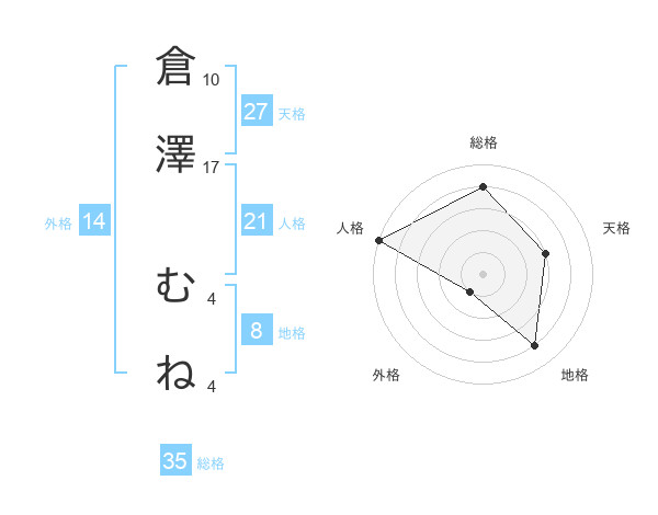 倉澤 むねさんの総格は35画の4点!