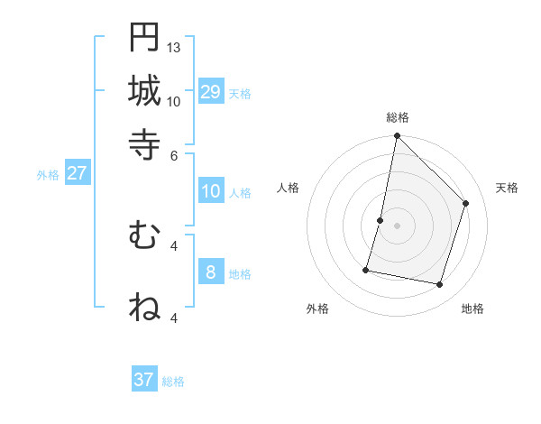 円城寺 むねさんの総格は37画の5点!