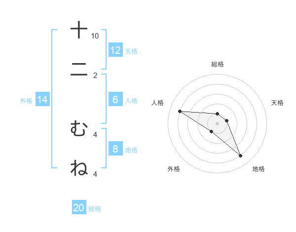 十二 むねさんの総格は20画の1点!