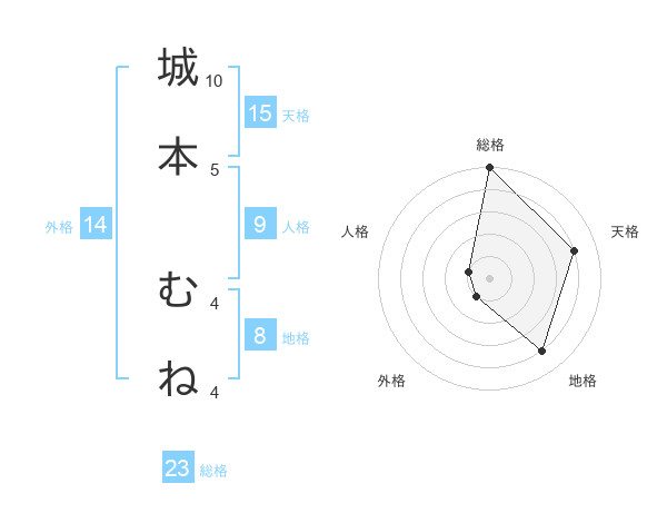 城本 むねさんの天格は15画の4点!