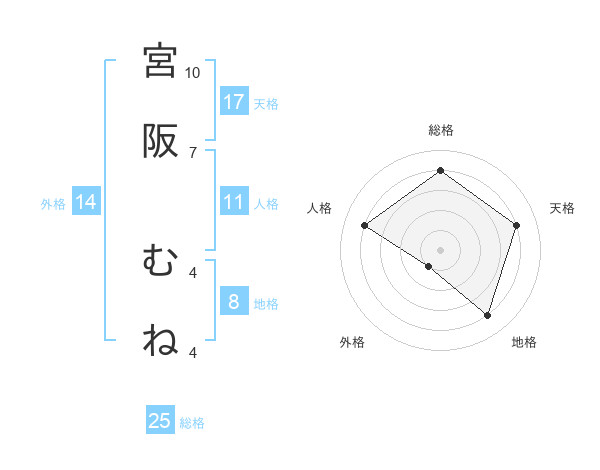 宮阪 むねさんの地格は8画の4点!