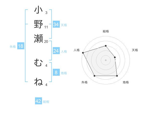 小野瀬 むねさんを姓名の画数から五運を鑑定