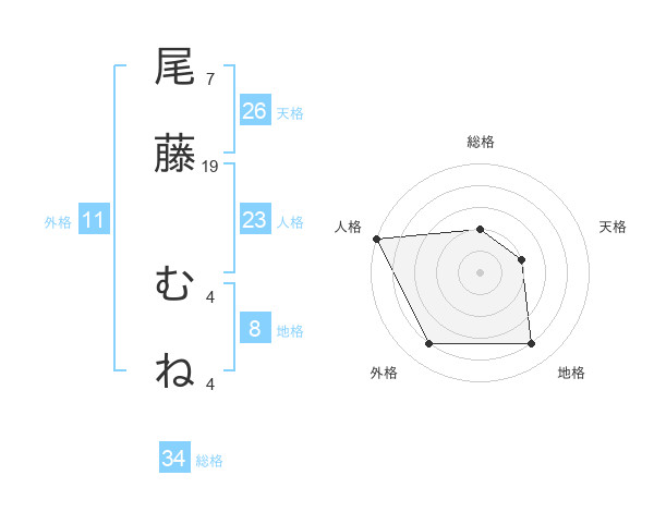 尾藤 むねさんを姓名の画数から五運を鑑定