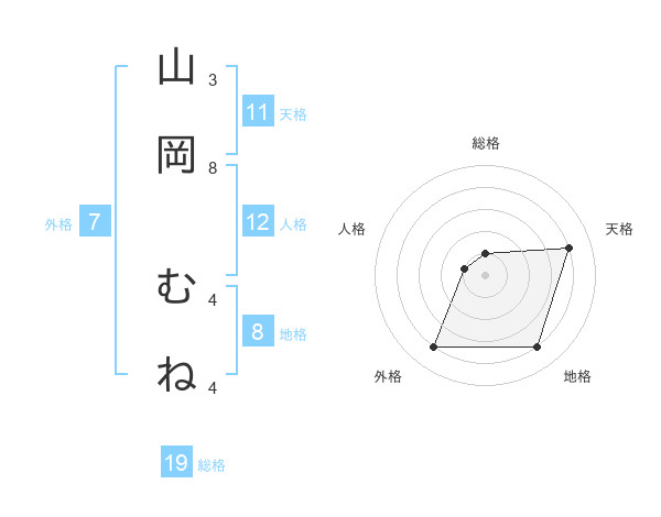 山岡 むねさんの地格は8画の4点!