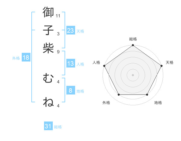 御子柴 むねさんの総格は31画の5点!