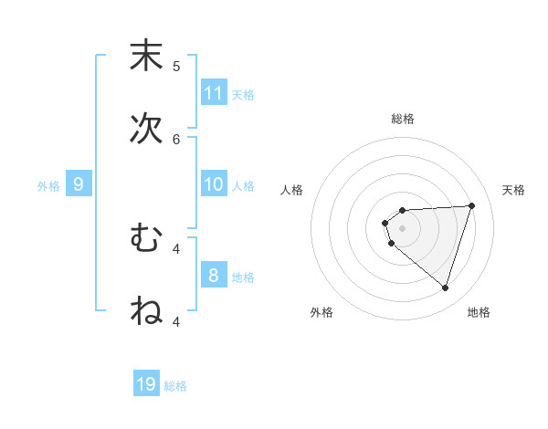 家系が持つ宿命的な運勢を表します。祖先から受け継いだ苗字ですので自分の力が及びません。家柄を象徴します。