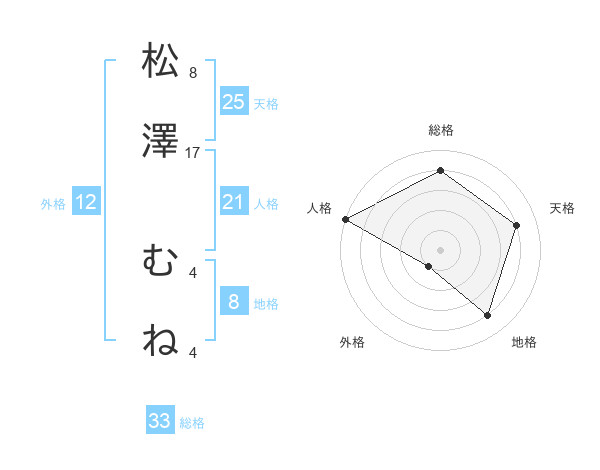 松澤 むねさんの地格は8画の4点!