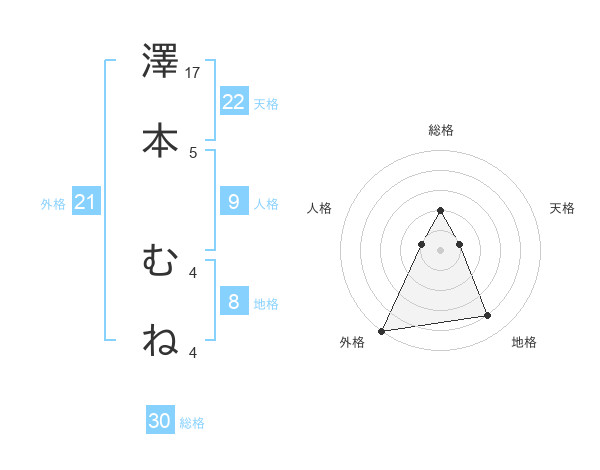 澤本 むねさんの地格は8画の4点!