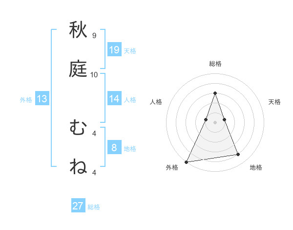秋庭 むねさんの外格は13画の5点!