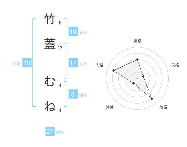 竹蓋 むねさんの総格は27画の3点!
