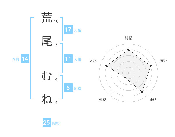 荒尾 むねさんを姓名の画数から五運を鑑定