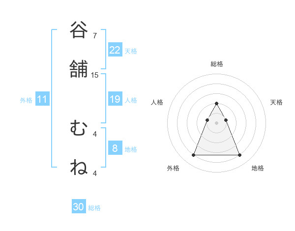 谷舗 むねさんの天格は22画の1点!