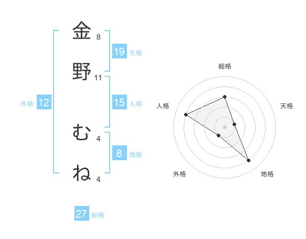 金野 むねさんの地格は8画の4点!