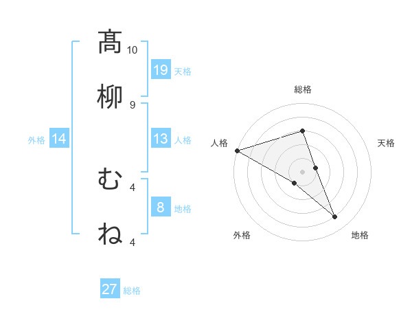 髙柳 むねさんを姓名の画数から五運を鑑定