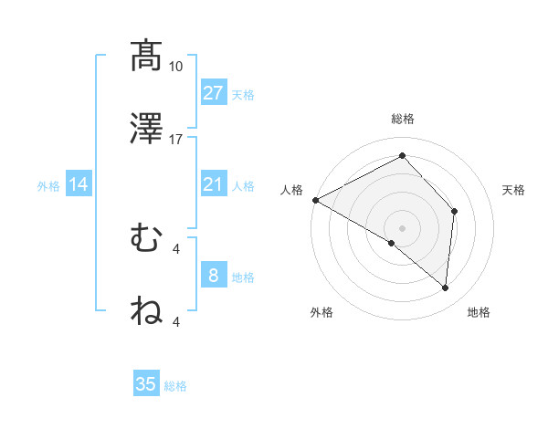 髙澤 むねさんを姓名の画数から五運を鑑定