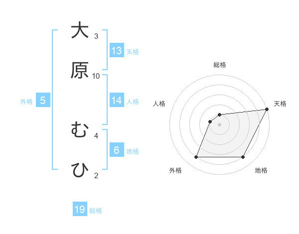 大原 むひさんの天格は13画の5点!