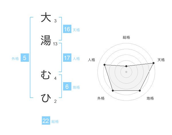 大湯 むひさんの天格は16画の5点!
