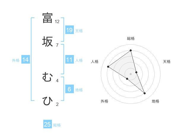 富坂 むひさんの総格は25画の4点!