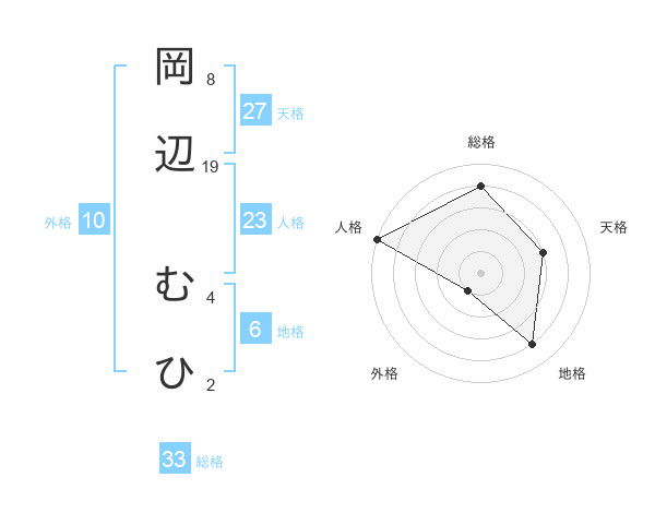 岡辺 むひさんを姓名の画数から五運を鑑定