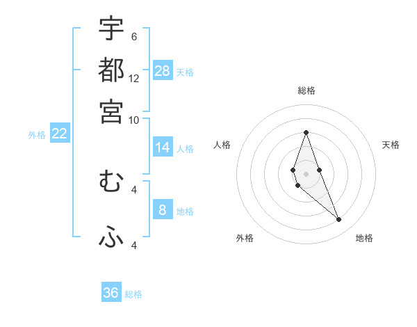 宇都宮 むふさんを姓名の画数から五運を鑑定