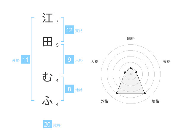 江田 むふさんの地格は8画の4点!