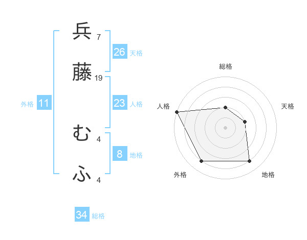 兵藤 むふさんを姓名の画数から五運を鑑定