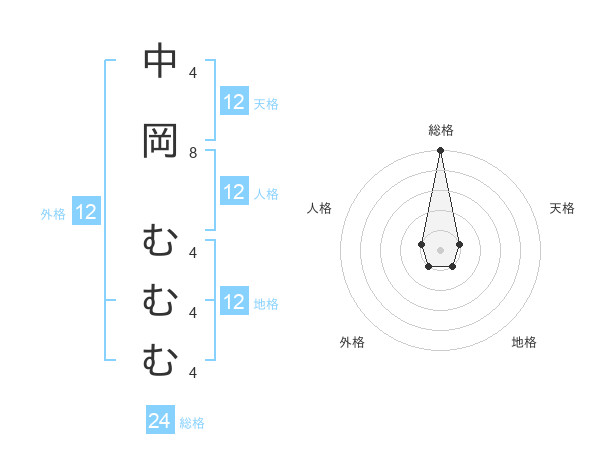 中岡 むむむさんを姓名の画数から五運を鑑定