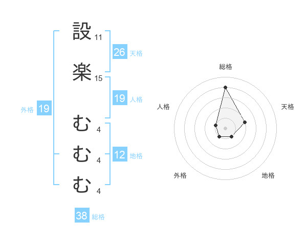 設楽 むむむさんの総格は38画の4点!