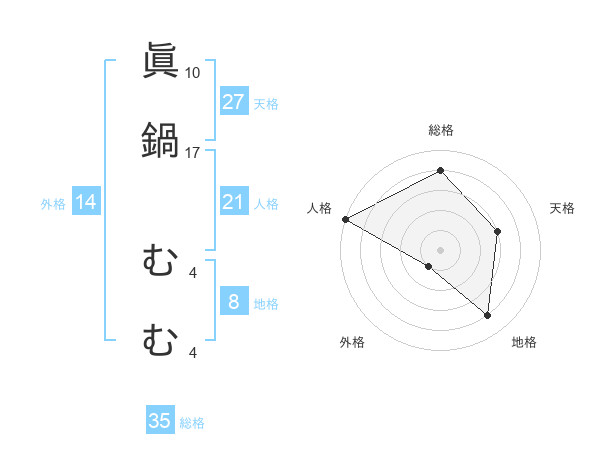 眞鍋 むむさんの総格は35画の4点!