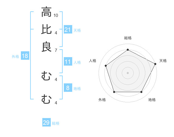 高比良 むむさんの天格は21画の5点!