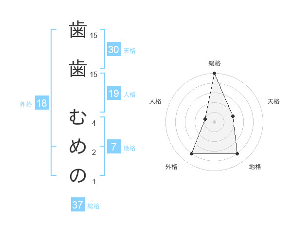 歯歯 むめのさんの総格は37画の5点!