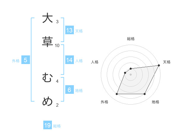 大草 むめさんの天格は13画の5点!