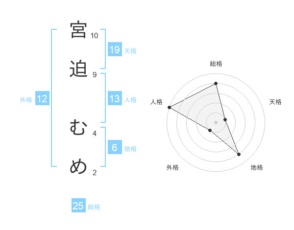 宮迫 むめさんの外格は12画の1点!