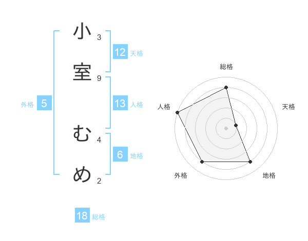 小室 むめさんの人格は13画の5点!