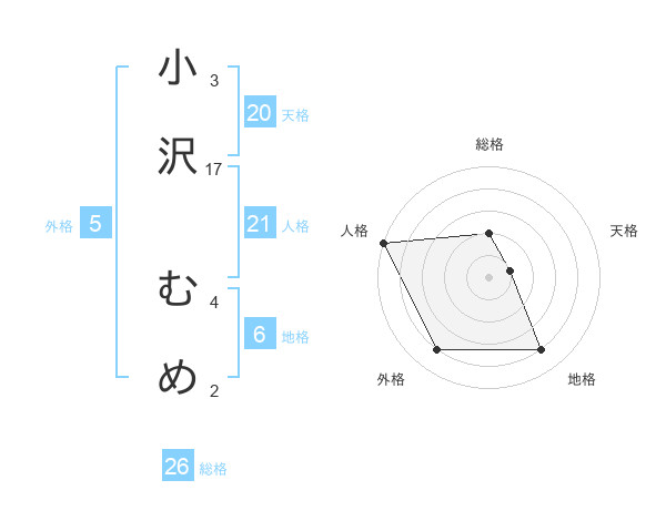 小沢 むめさんの外格は5画の4点!
