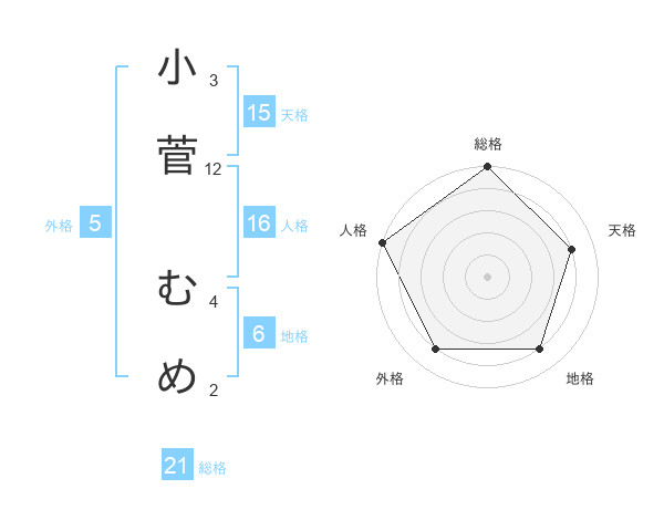 小菅 むめさんの人格は16画の5点!
