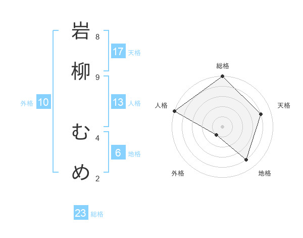 岩柳 むめさんを姓名の画数から五運を鑑定