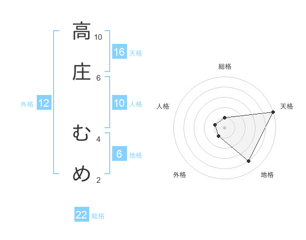 高庄 むめさんの天格は16画の5点!